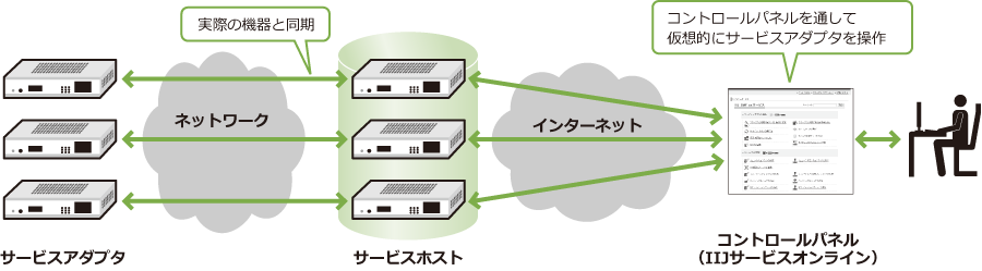 IIJマルチプロダクトコントローラサービス スタンダード(以下、本サービス)は、対応するルータ(以下、サービスアダプタ)をリモート操作し、お客様ネットワークの運用に必要な初期設定、設定変更、監視、及び保守のすべてを効率化するIIJ(以下、弊社)のサービスです。