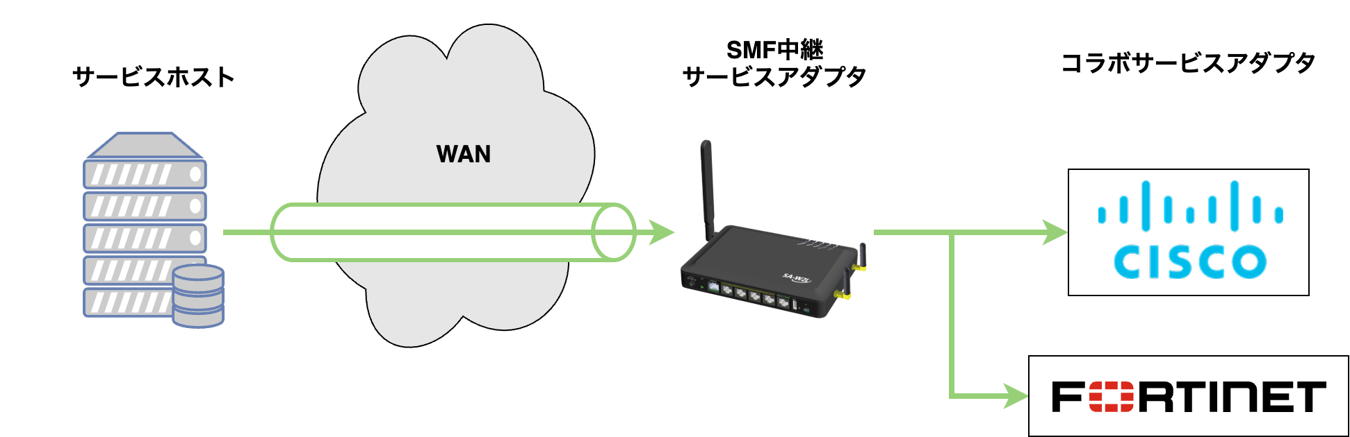 コラボサービスアダプタは、サービスホストからの管理通信を中継する「SMF中継サービスアダプタ」を通して管理します。