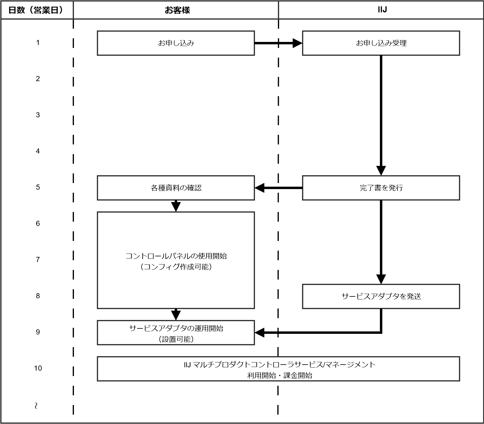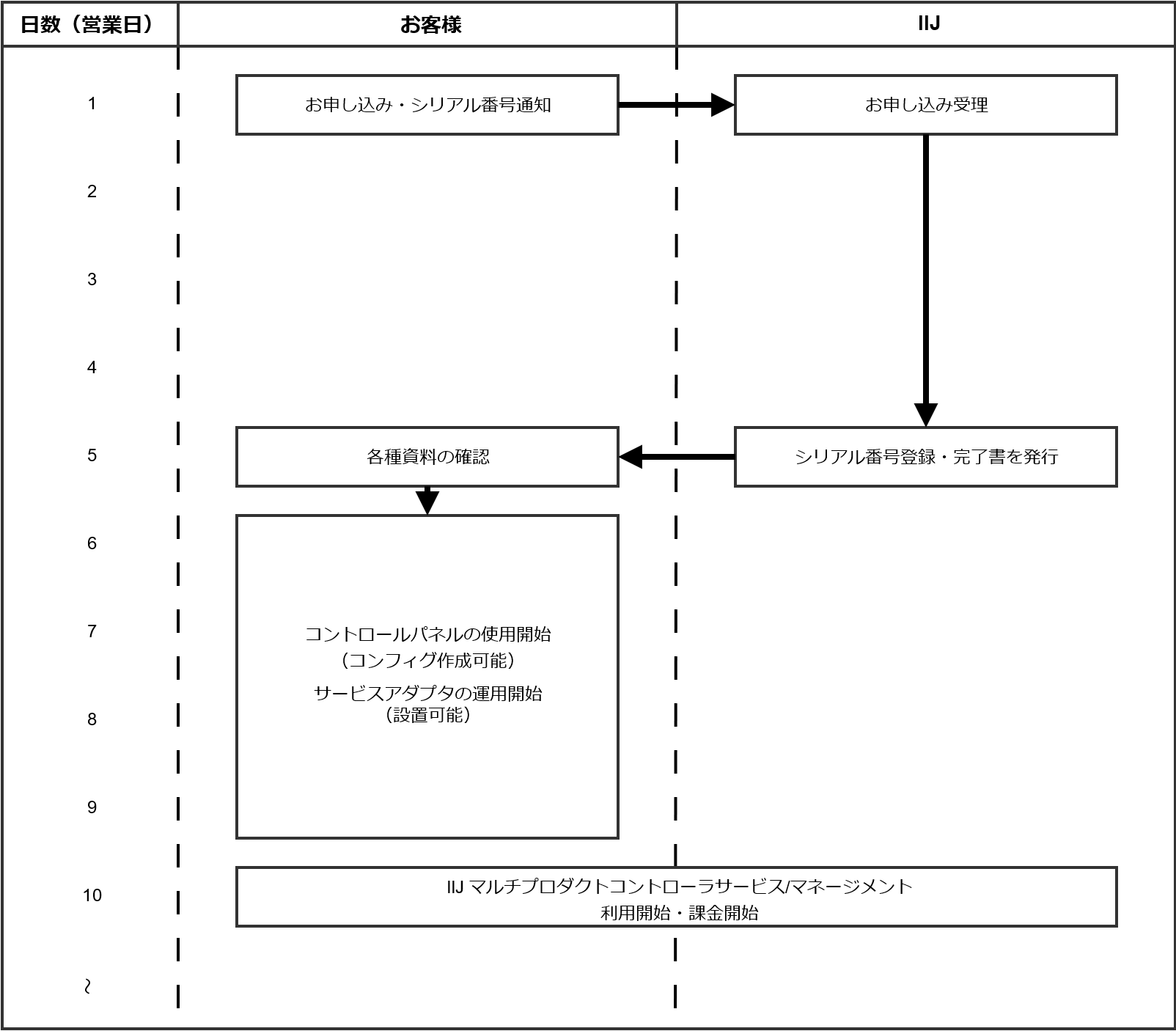 | IIJマルチプロダクトコントローラサービス/サービスアダプタ | 10営業日 |