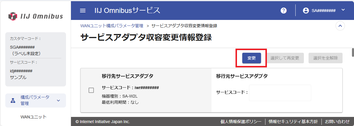 3. 準備ができたら、「サービスアダプタ収容変更」をクリックして設定を反映します。