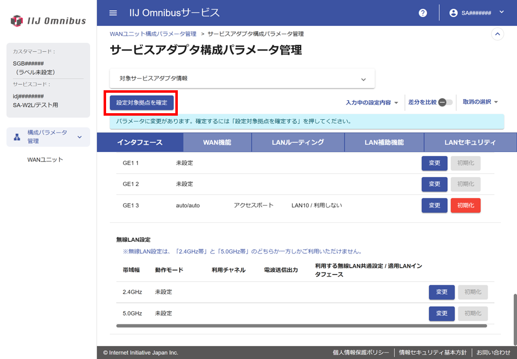 1.「サービスアダプタの設定を登録する(WANユニット)」または「サービスアダプタの無線LAN共通設定を登録する(WANユニット)」を参照し必要なパラメータを入力します。