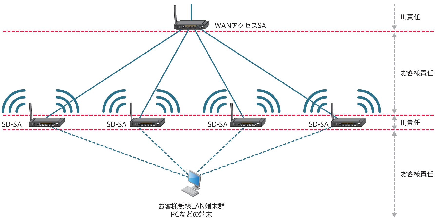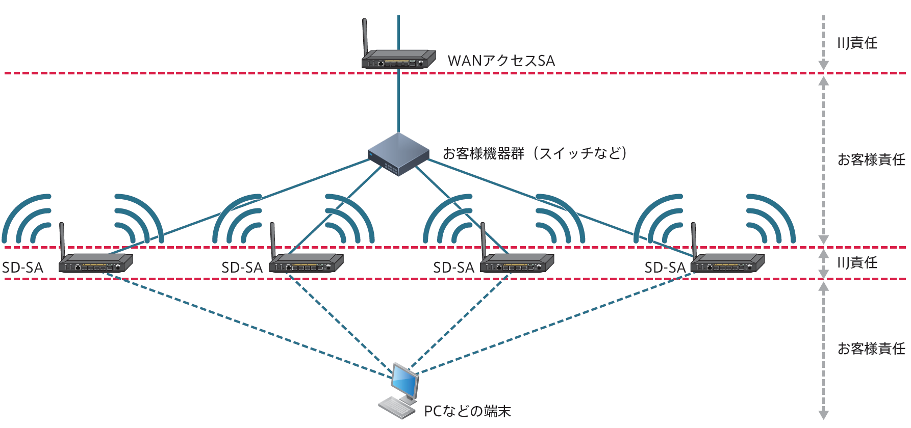 WANアクセスSAと直接接続して設置できるSD-SAは4台までです。