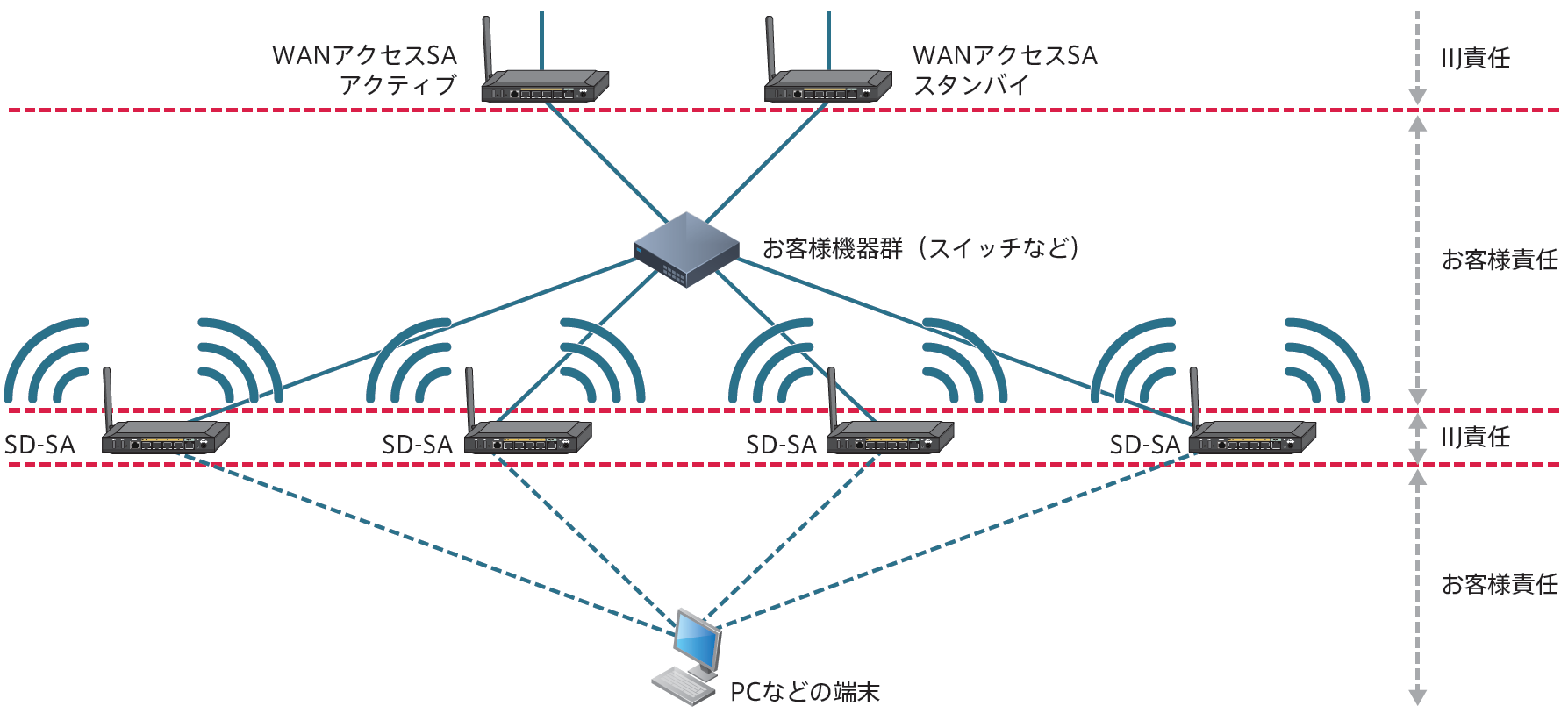 - お客様機器群のデフォルトルートがWANアクセスで提供するSAとなること。