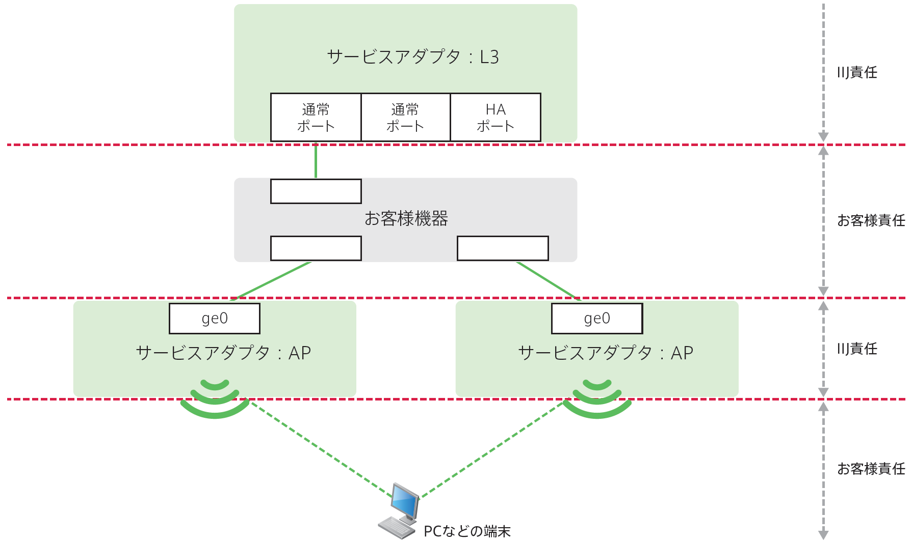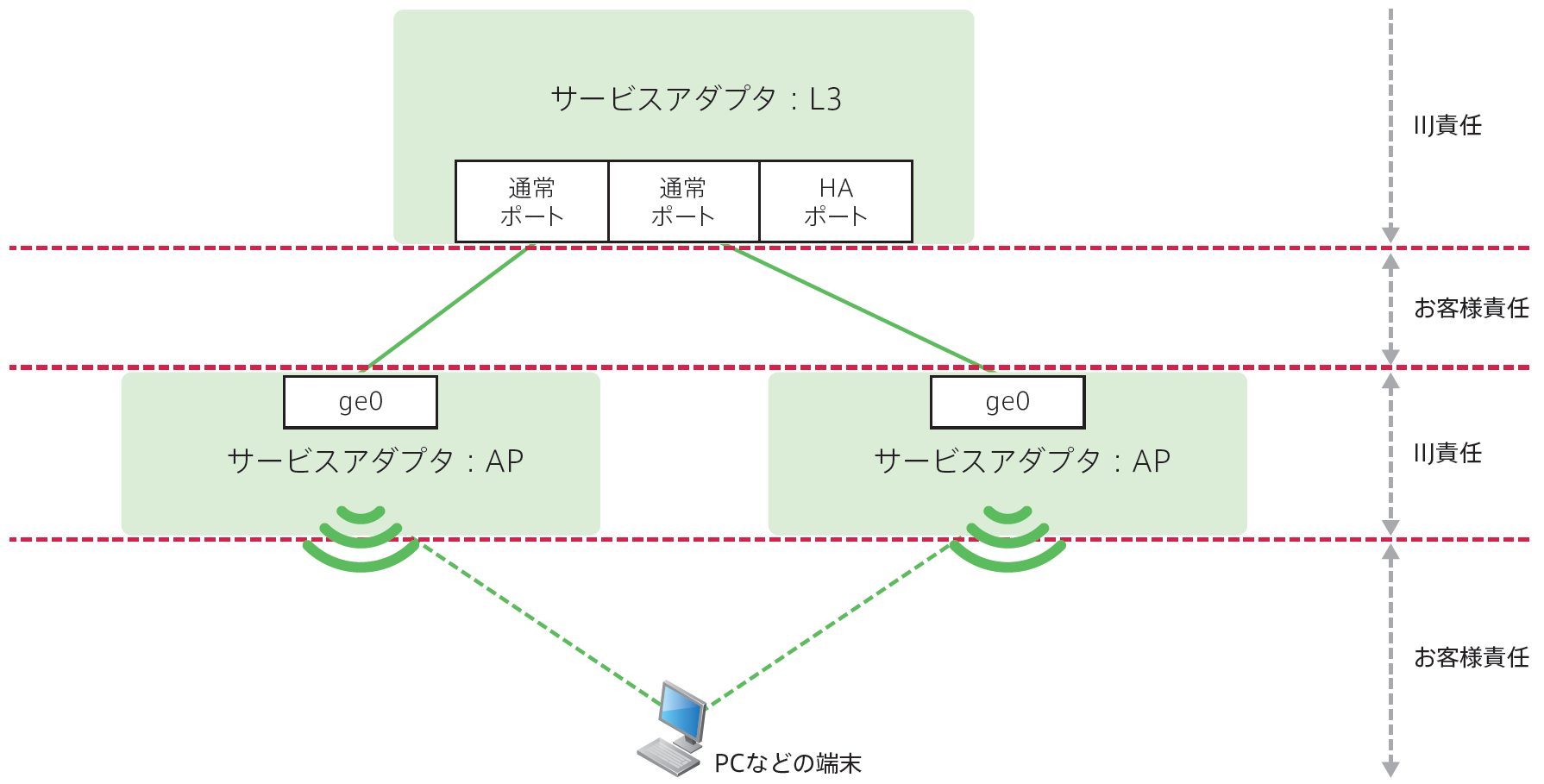 - お客様機器にL3機器が含まれる場合、お客様L3機器のデフォルトゲートウェイがサービスアダプタ:L3であること。