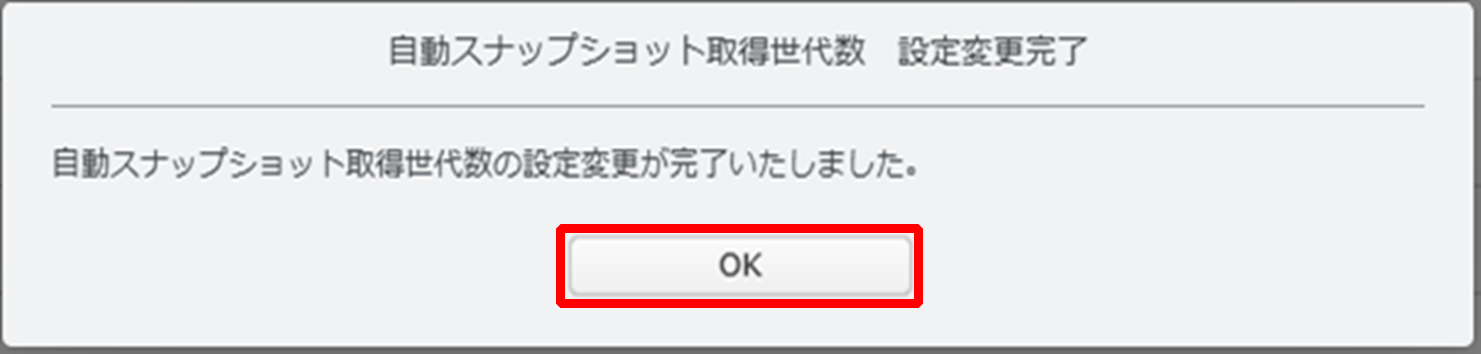 「自動スナップショット取得世代数設定変更完了」画面が表示されます。