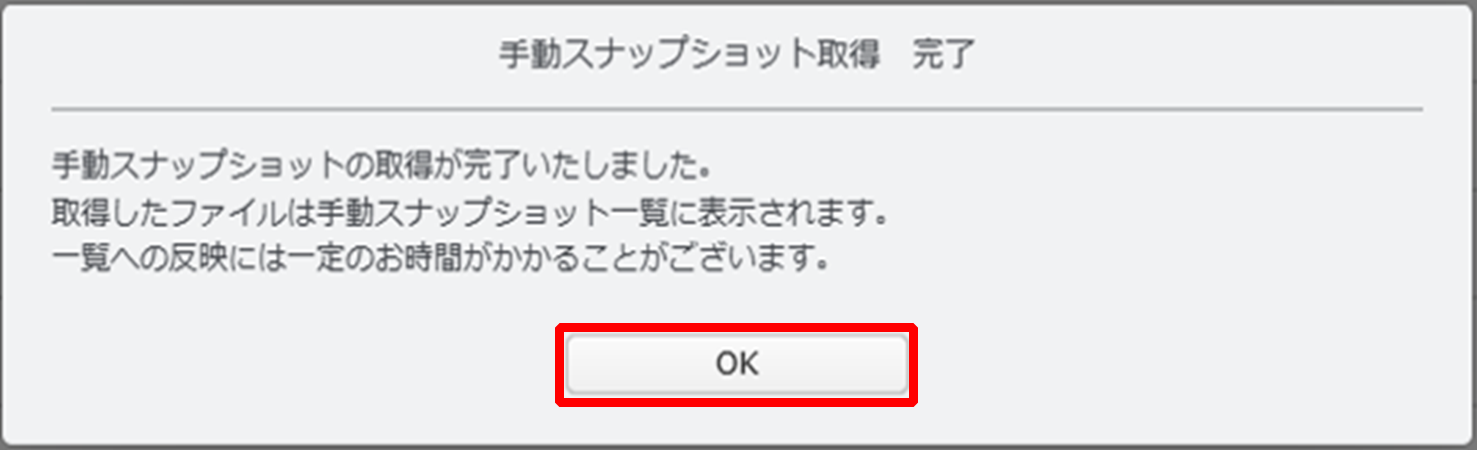 スナップショットファイル一覧にスナップショットファイル名が表示されます。