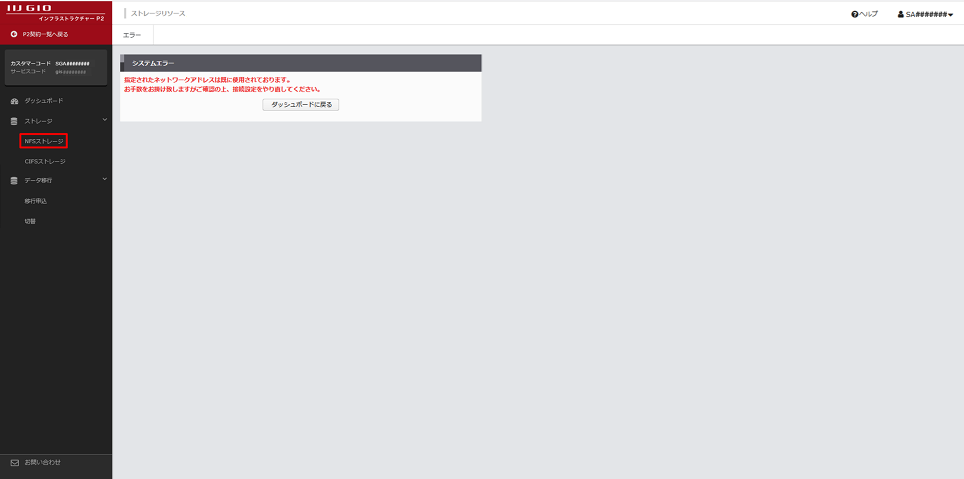 1.4 NFSストレージご契約時のエラーへの対応