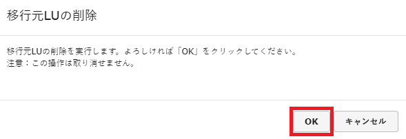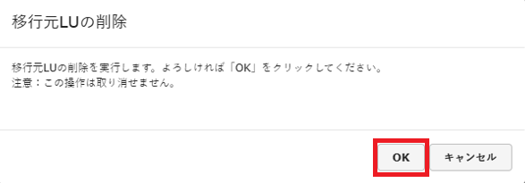 - データの移行が完了した後はお客様にて動作確認のうえ、移行元のLUを削除する必要があります。