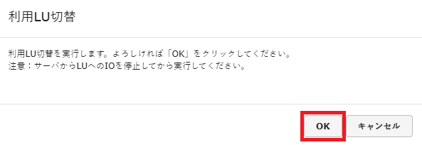 移行先LUへのアクセスが正常に行えない場合は切り戻しを実施してください。利用LU切替の切り戻し方法は「利用LUの切り戻し」をご覧ください。