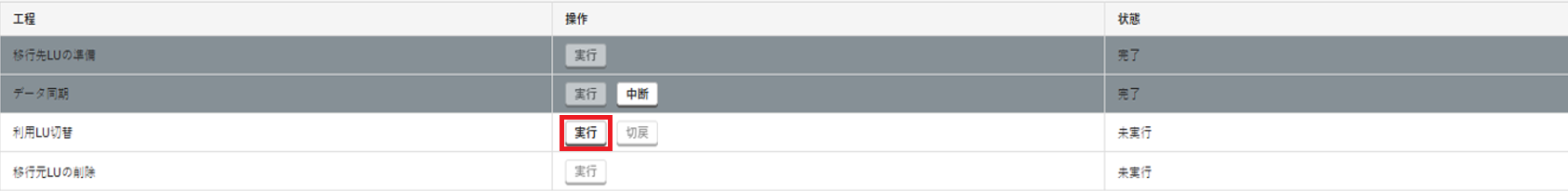 12. 「利用LU切替」の「状態」に「完了」が表示されていることを確認します。