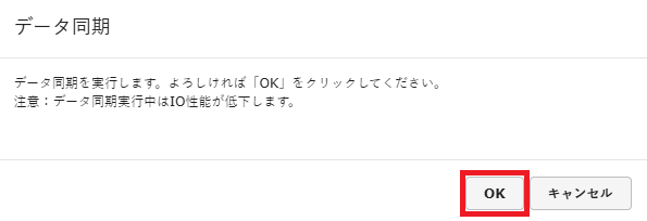 7. 「データ同期」の「操作」で「実行」をクリックします。
