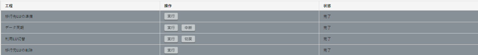 7. 「LU追加(移行先ストレージ)」の「状態」に「完了」が表示されていることを確認します。
