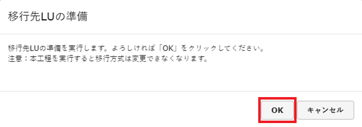「OK」をクリックすると移行方式は変更できなくなります。