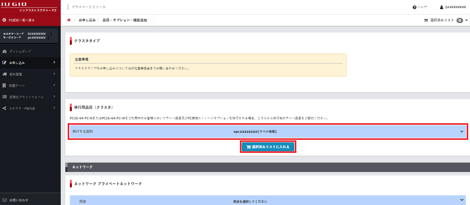 4. 「クラスタタイプのご契約」を参照し、移行先のサーバ品目のお申し込みを実施します。