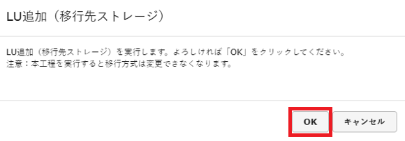 「LU追加(移行先ストレージ)」画面が表示されます。