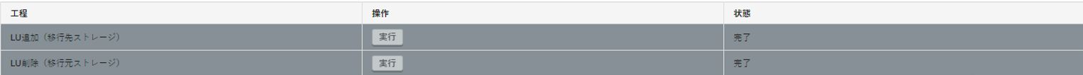 4. 「LU追加(移行先ストレージ)」の「状態」に「完了」が表示されていることを確認します。