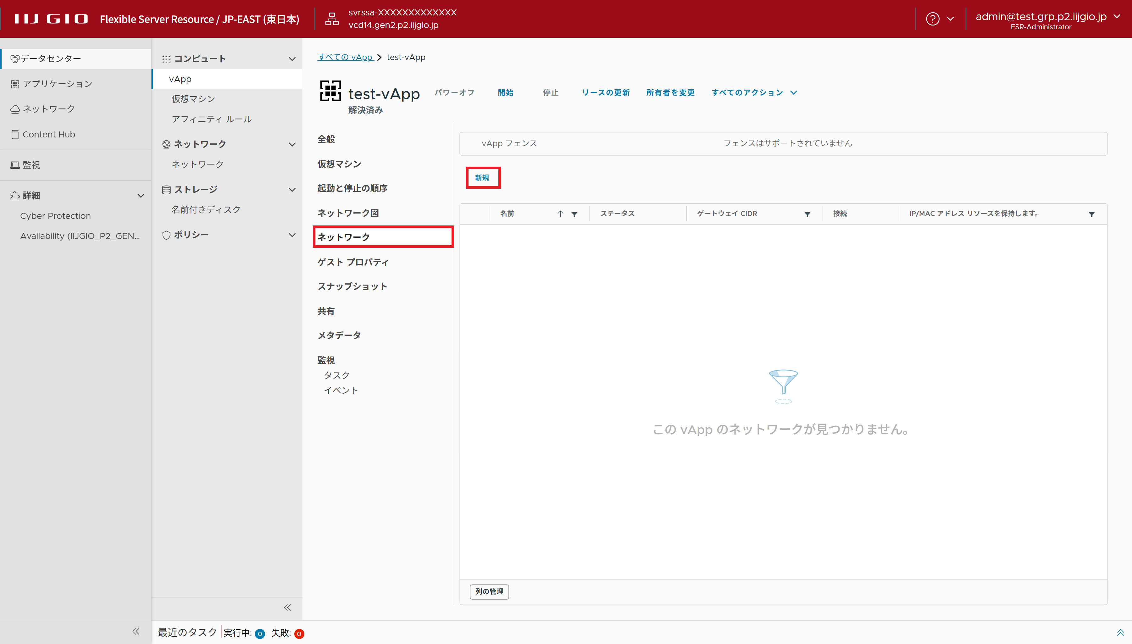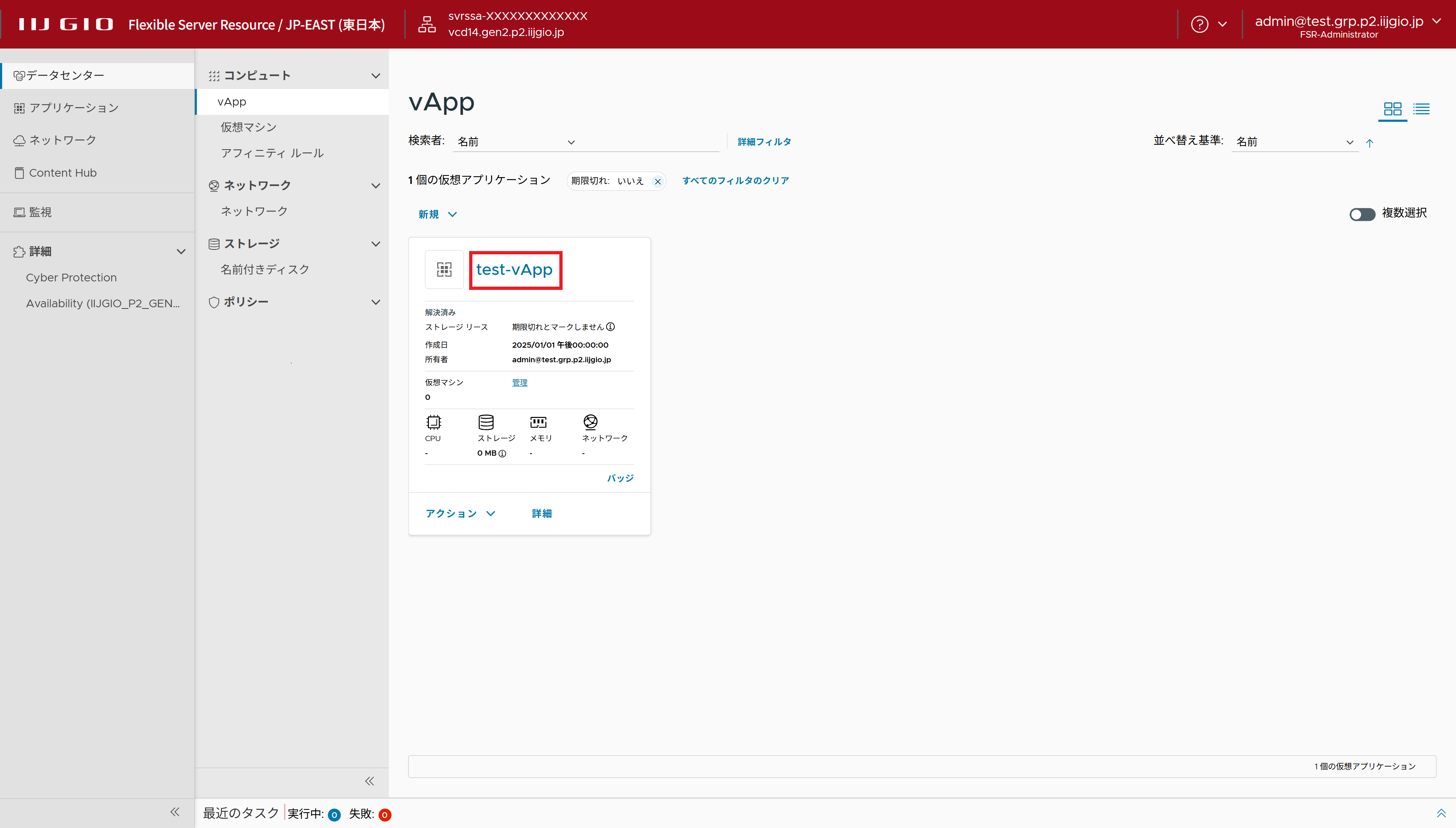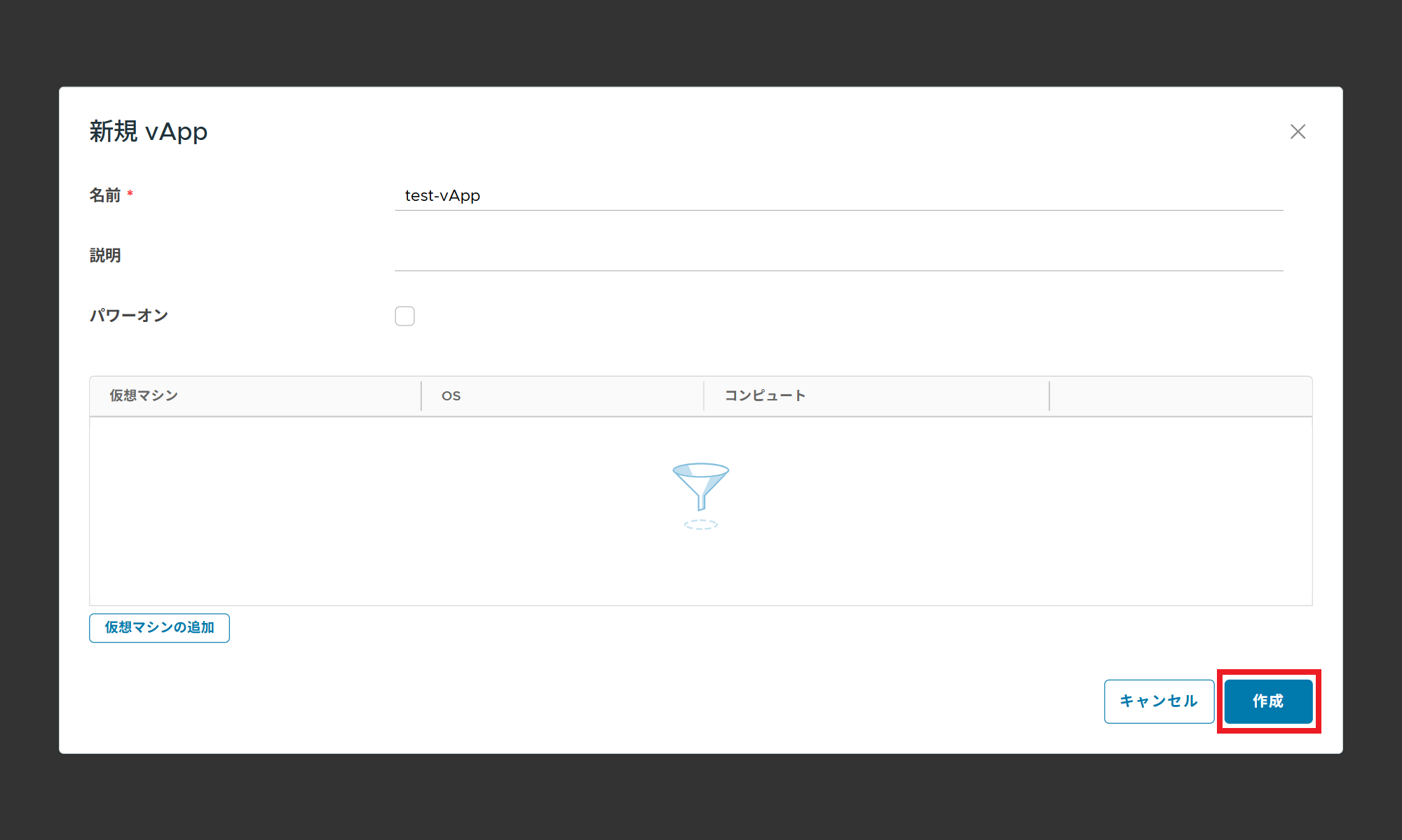 「新規vApp」画面が閉じ、vAppが作成されます。