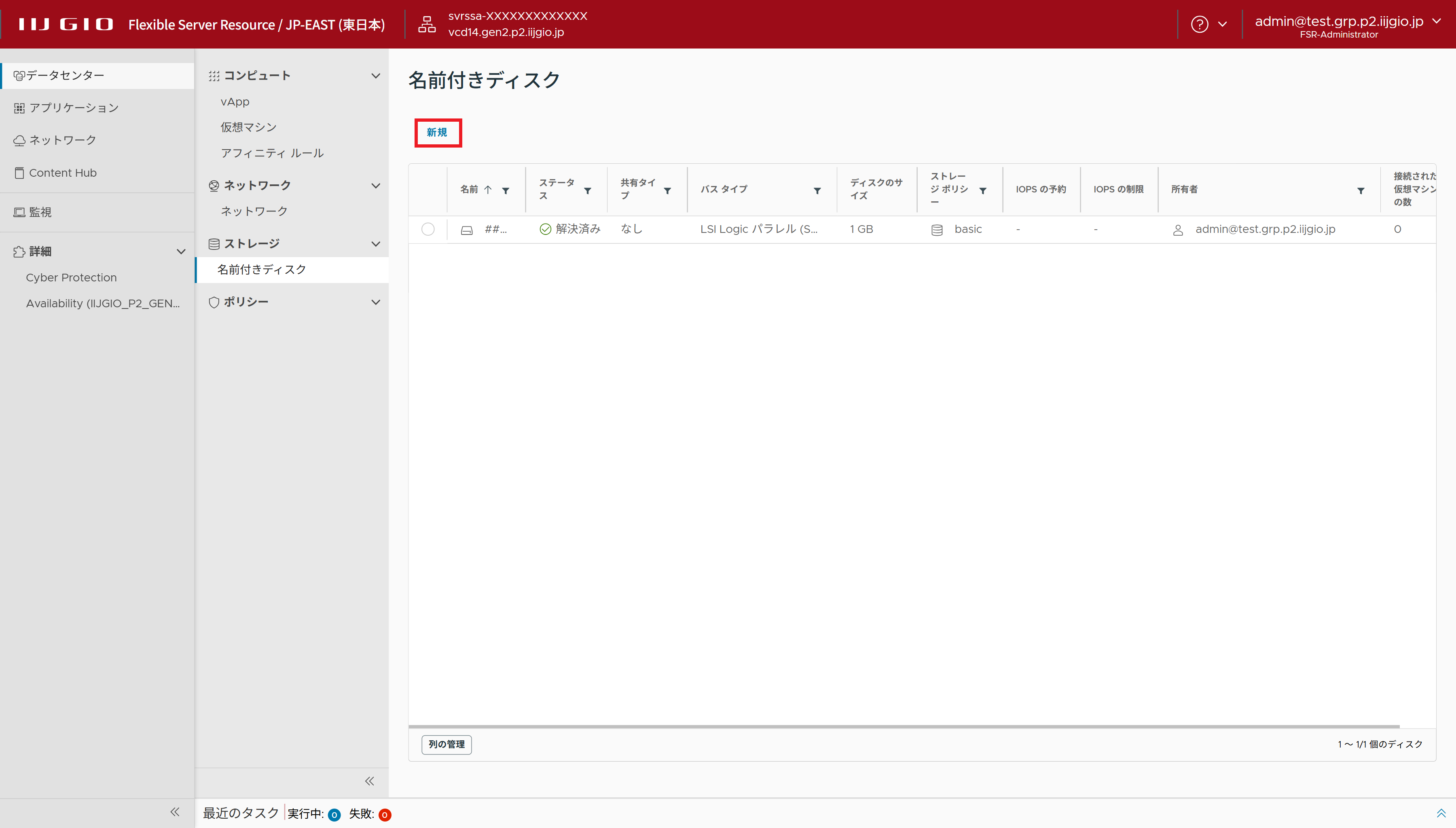 「名前付きディスクの作成」画面が閉じ、名前付きディスクが作成されます。
