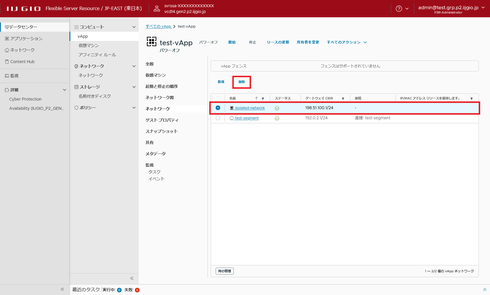 手順2、手順3の操作を繰り返し、vAppネットワークをすべて削除します。