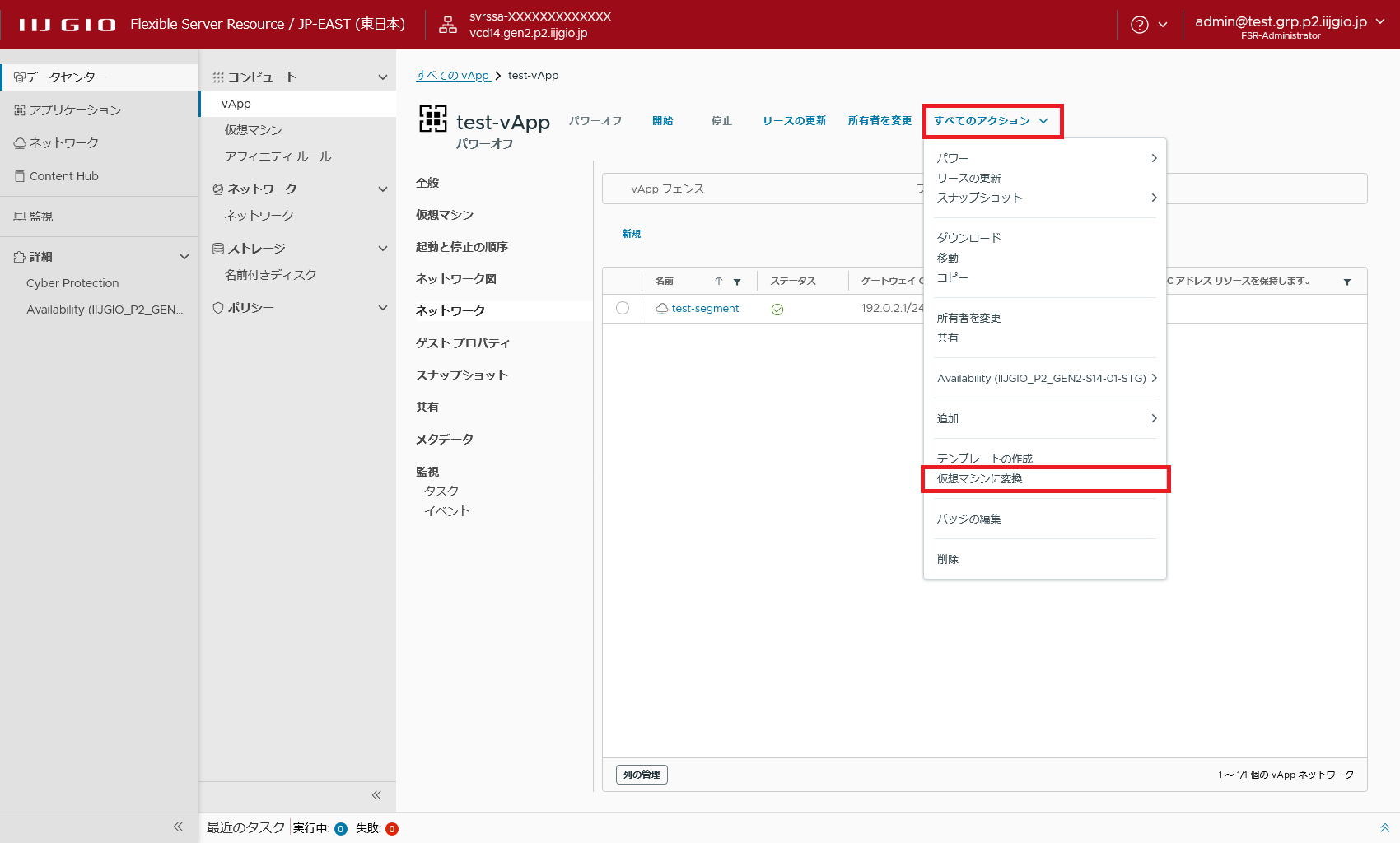 ここでは隔離ネットワークを削除し、vAppを仮想マシンに変換する手順を説明します。