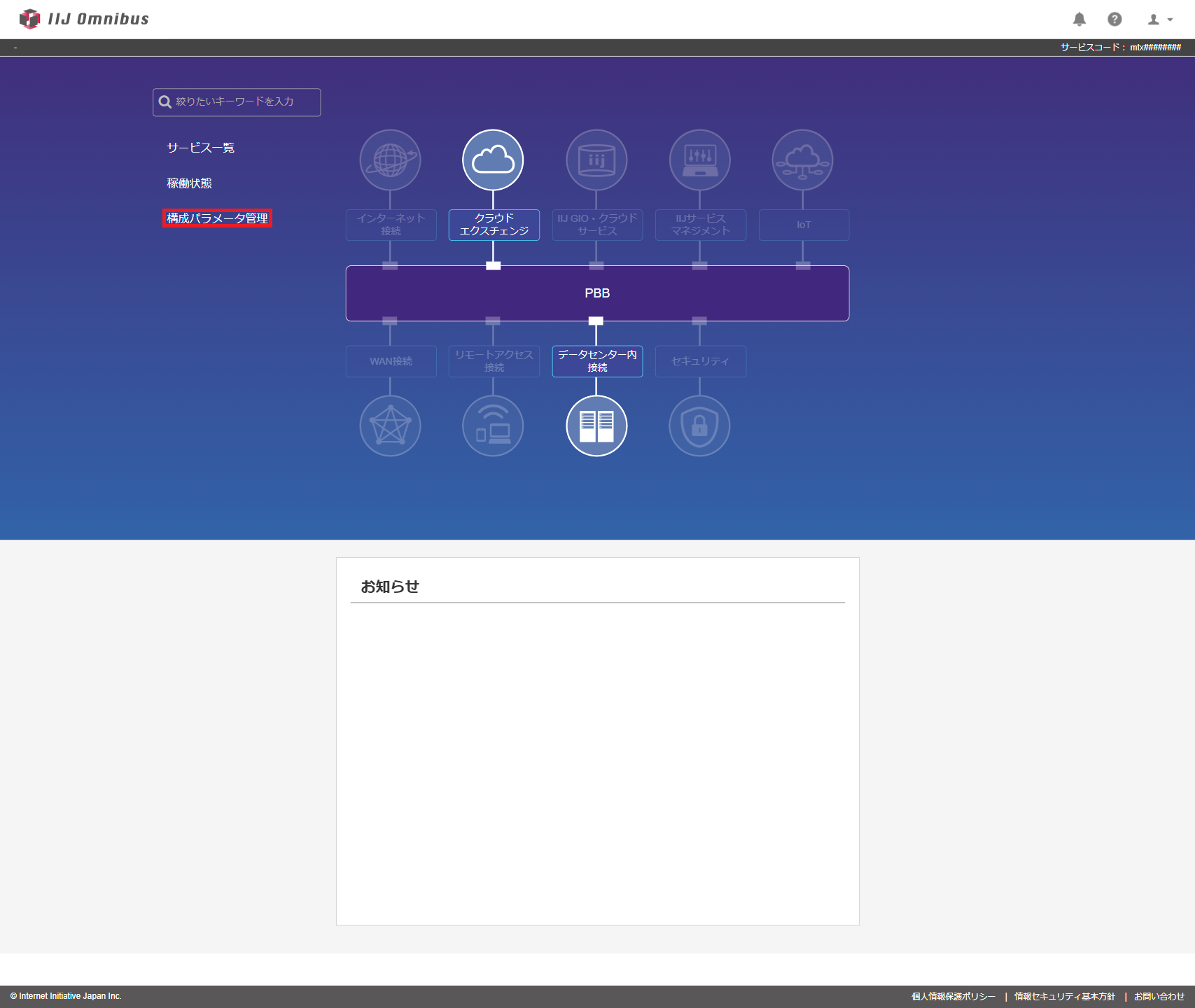 なお、本情報の参照には、本サービス及び本サービスに接続するIIJプライベートバックボーンサービスの運用管理担当者それぞれへの登録が必要です。