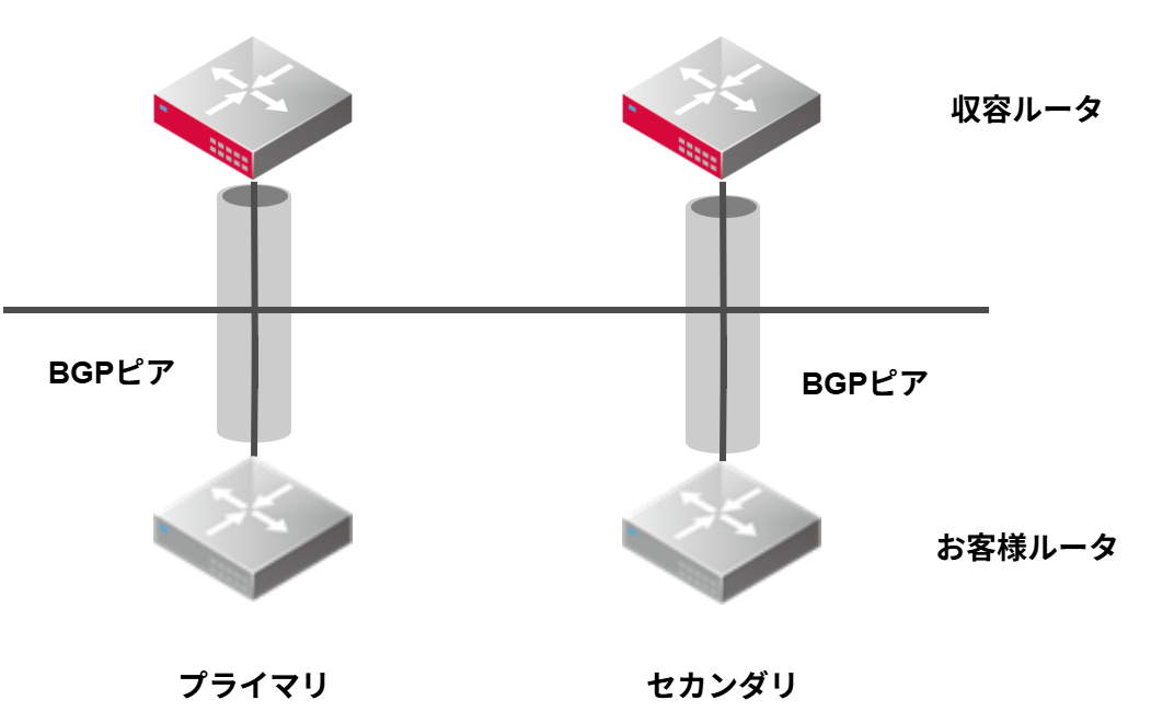 ダイナミックルーティングで構成する場合、本タイプはBGPを利用して、お客様ルータと経路交換をします。
