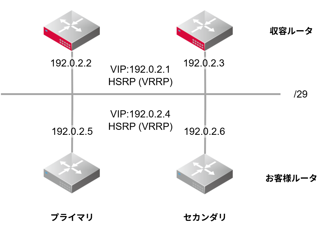 | セカンダリ収容ルータアドレス | 192.0.2.3 | 192.0.2.0/29 +3の値 |