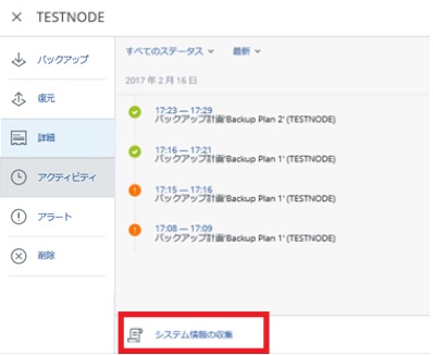 3.アクティビティ一覧の「システム情報の収集」をクリックします。